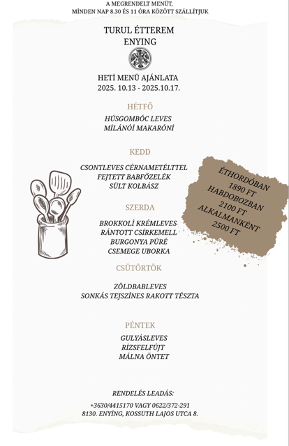 Aktuális heti menünket lent az “Étlap & Heti menü” szekcióban találjátok